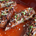 7. Maak de chocoladetopping door de kokosolie, cacaopoeder en ahornsiroop glad te draaien in de keukenmachine tot een smeerbare chocoladepasta.